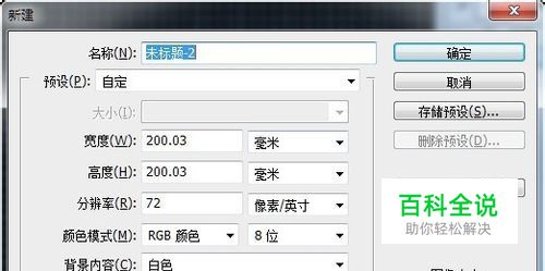 新建200*200毫米(注意是毫米)画布,背景内容白色