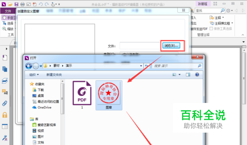 弹出“创建自定义图章”的弹窗,点击“浏览”,选择需要的电子图章,点击“打开”
