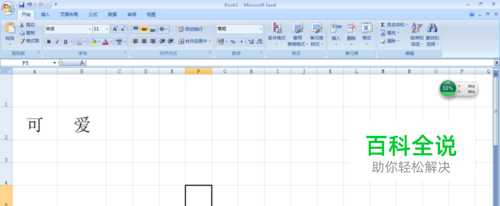 打开Excel 2007并在第二行输入"可爱“两个字。