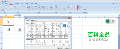 选中我们需要的带音调的拼音,点击插入,“可”的拼音就完成了,点击关闭符号窗口