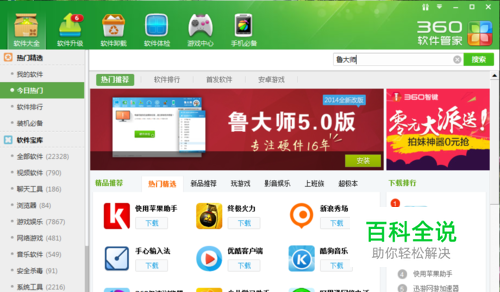 首先在360电脑管家里面下载一个鲁大师软件,也可以用其他驱动软件。如下图示输入鲁大师搜索。