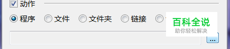 动作,程序就是选择你点这个按钮会打开什么程序,比如设置这个按钮来打开qq,点击...然后找到QQ的路径。设置好了了就点完成,然后点击那个按钮就打开QQ。文件、文件夹、链接,顾名思义。命令就是计算机指令,选择命令,点击...然后输入命令,比如输入关机命令shutdown /s /t 0,然后点完成,然后点击这个按钮电脑就关机了。其他的命令看我其他的经验里有。