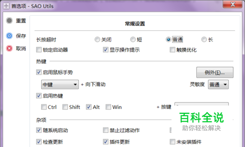 右键SAO的图标,十字形的那个,点首选项(右键的时候不能截图所以没图)设置按自己的喜好设置,你要开关插件的话,点击你需要开启或关闭的插件然后左下角有一个启用,你要开启就打钩,关闭则反之。弄完记得要保存。