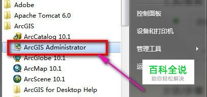 开始——所有程序——arcgis——启动【ArcGIS Administrator】,如图
