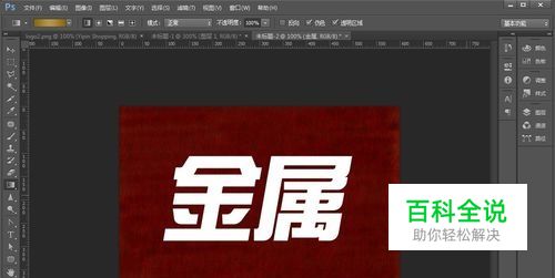 首先我们新建一个600*400的画布,然后找一个深红色的背景,或者直接填充一个深红色的背景色。用文本工具在画布中间写上“金属”两个字。