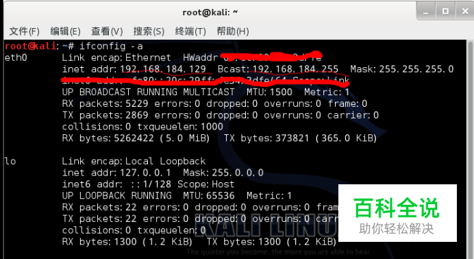 在虚拟机中打开终端输入“ifconifg -a”查看网卡。从上面我们知道了内网IP段是 192.168.1.X(X可以填2-254任何一数),而下面的是192.168.184.129 显然不是内网。