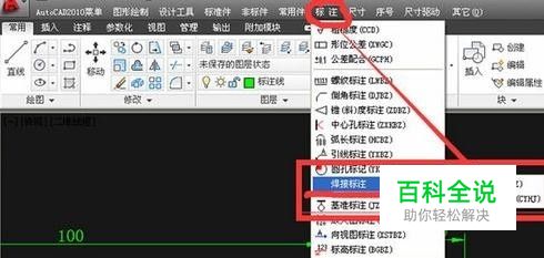 打开需要标注加工符号的文档,点击上方的“标注”→“焊接符号”