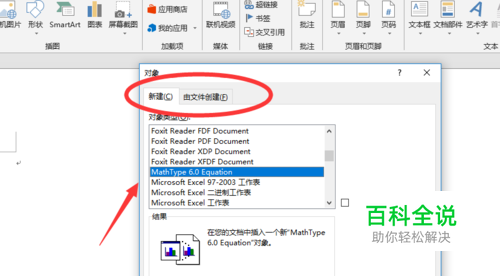 在新建中,选择图中显示的 数学公式编辑器,确认,便会插入公式。