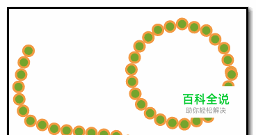 接着,在画笔面板这里,鼠标点住小圆,把小圆拖向路径这里,放开鼠标,这个小圆即会平均分布在此路径上。