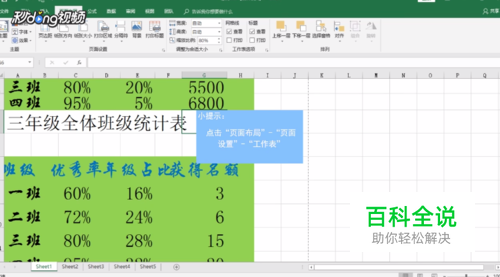打开Excel表格,点击“页面布局”-“页面设置”-“工作表”。