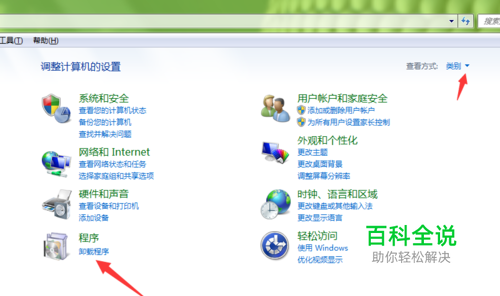 进入控制面板,把类别调整一下,让我们可以看到卸载程序这一项。