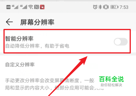 点击后,可以看到页面上方的智能分辨率的选项,默认该选项是关闭的。我们点击选项后方的开关。