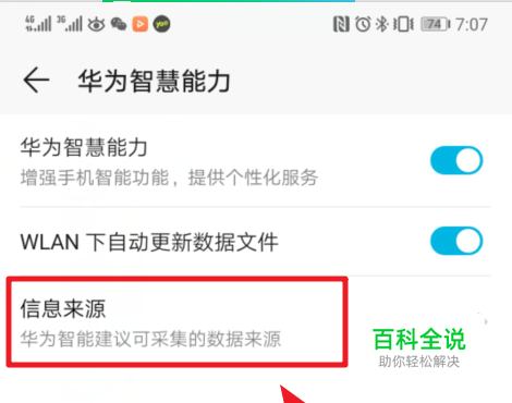 华为手机怎么关闭智慧能力信息来源应用