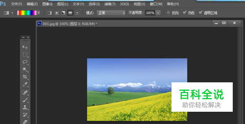 打开Photoshop,点击菜单上的“文件”——“打开”,选择需要画上彩虹的图片;