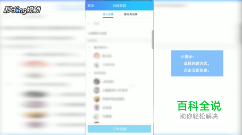 可以选人创建,也可以按分类创建。按照上述某一种方式对好友进行选中,已选中的好友会出现在上方的搜索框内。