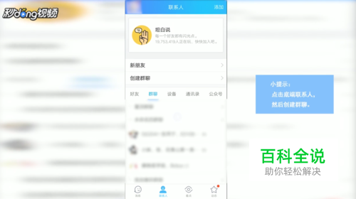 点击菜单底端的“联系人”,进入联系人页面,在页面中点击“创建群聊”。