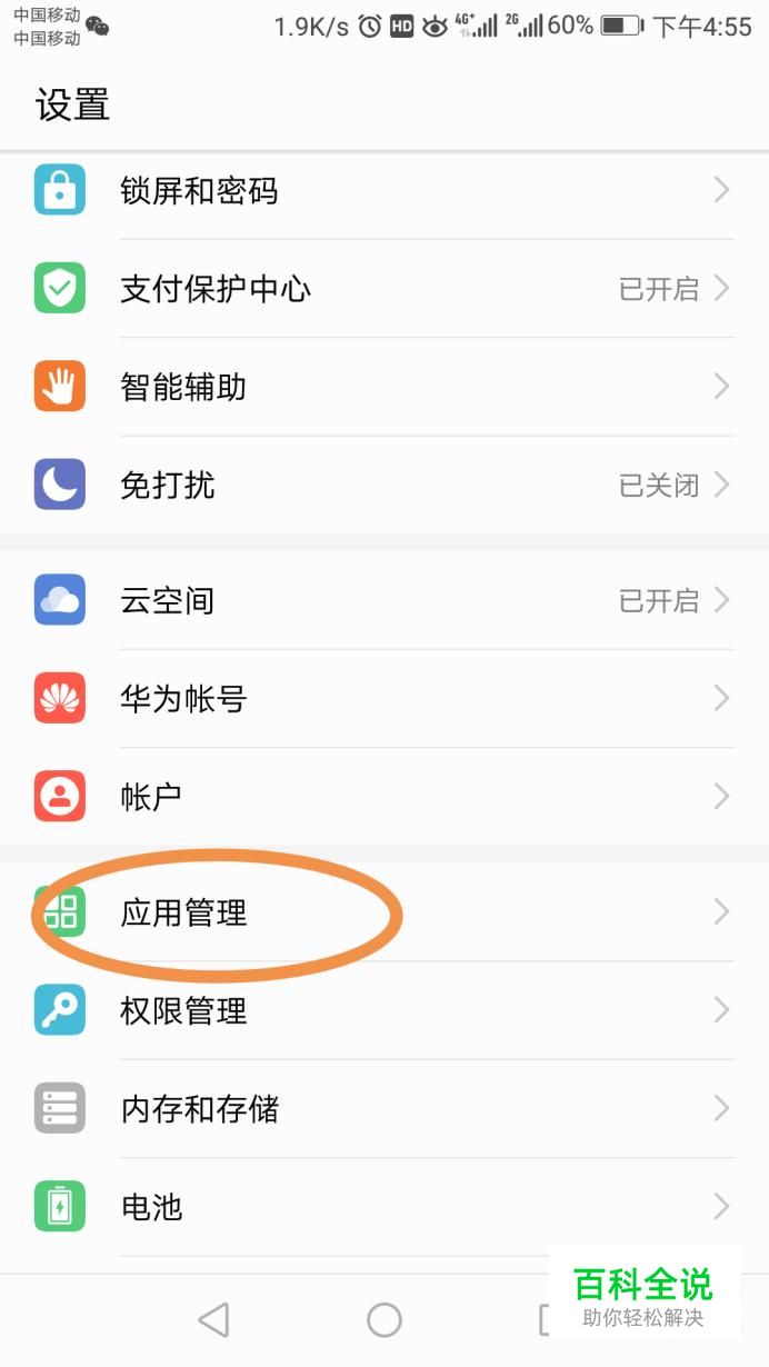 第二步,用手指将屏幕往下滑,找到【应用管理】,如图所示