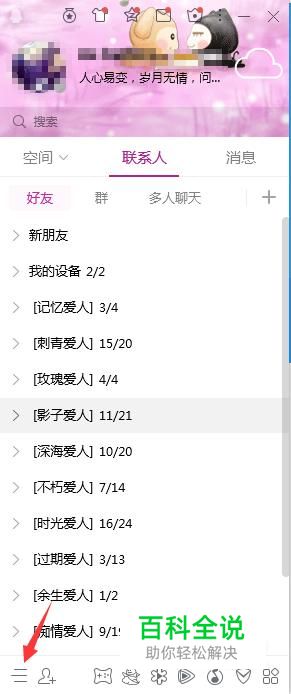 首先我们登录qq账号,点击主页面左下角的“三横”。