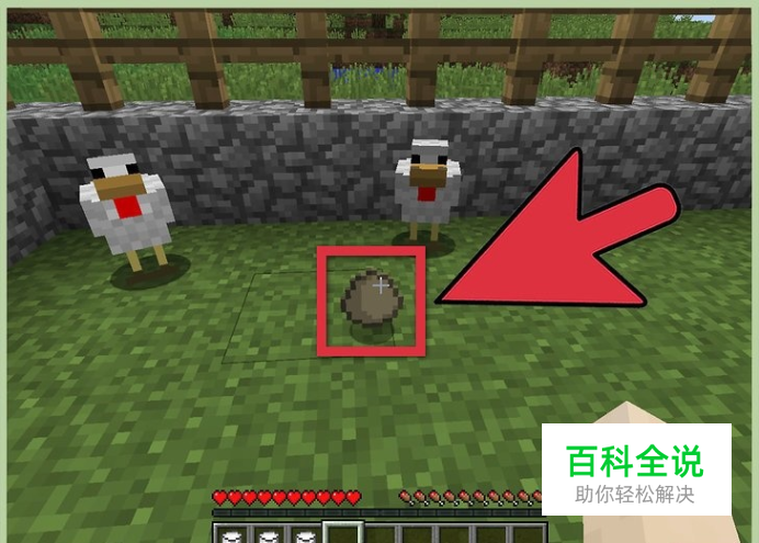 拿个鸡蛋。鸡蛋是鸡下的,可以在野外找到。也可以抓鸡养在篱笆里。