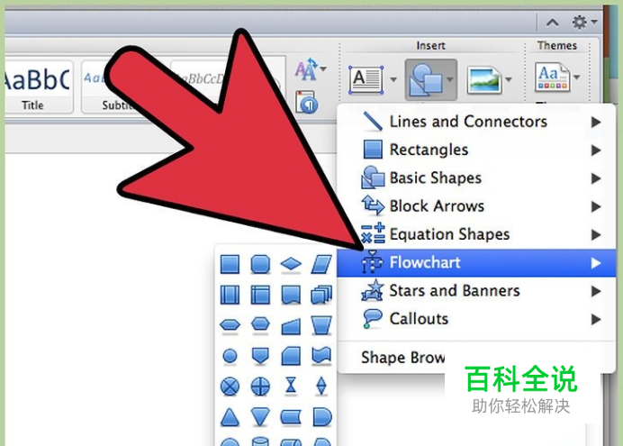 设定起点。在绘图工具栏上,单击自选图形按钮。从出现的菜单中选择流程图要用的第一个图形。这将在您的文档中创建绘图画布,画布上写“在这里创建图形”。