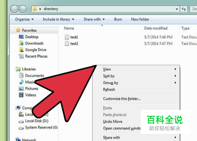 左键点击文件夹中的空白位置,确保你没有选中任何对象。然后按住CTRL+Shift键,右键点击空白区域。