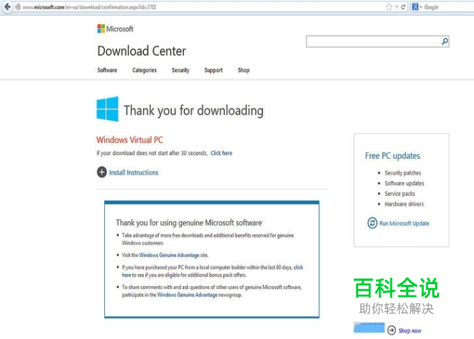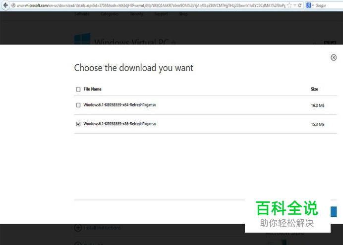 回到浏览器,第四步的页面中,点击'Download and install this second:Windows Virtual PC'(然后下载安装Windows Virtual PC)按钮,点击下载并打开。