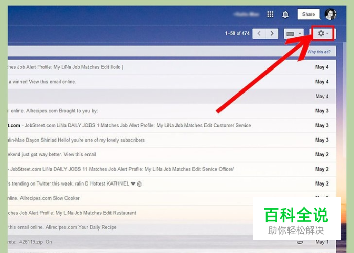 点击Gmail收件箱的菜单按钮。菜单按钮是位于Gmail窗口右上角的齿轮状按钮。点击它。