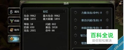 从下面图可以看到点是全智力,也就是暴击和命中,不过先不看加的哪个,而是看我的攻击力和重击。我现在所选择的加