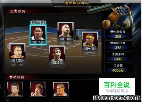 我们可以选择自己喜爱的球员,阵容及各项数据。也要关注综合评定,评定是根据球员场上的表现而定的,不存在固定。综合评定最高为S+ 如:詹姆斯,科比等。 其次为S , S- ,A+, A ,A- , B+ ,B ,B- ,C+,C , C-, D+ ,D ,D- 。 在初选阵容阶段,由于球员薪金、工资帽和阵容人数的匹配,选到S级球员几乎为0。系统分配当家球星最好也就是A+或S-[S-极少]
