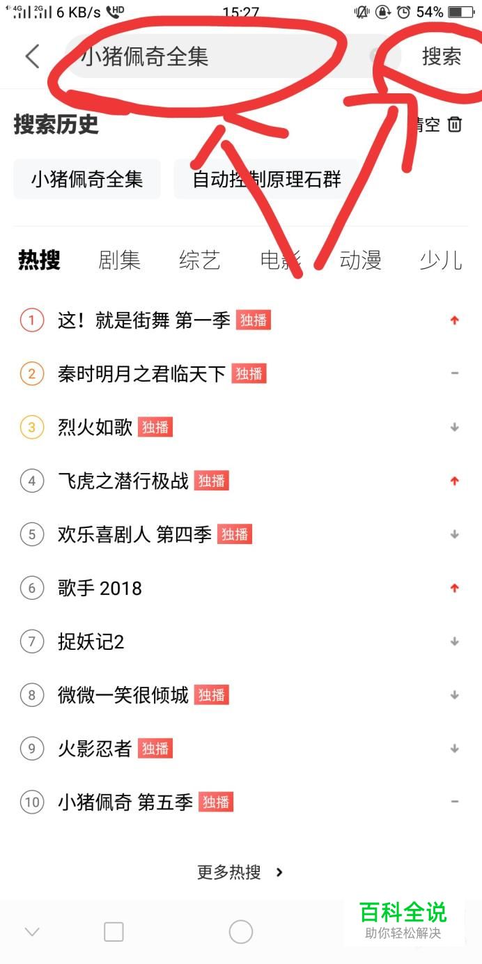首先我们在手机端打开优酷,然后搜索小猪佩奇,然后点击搜索,如下图所示。