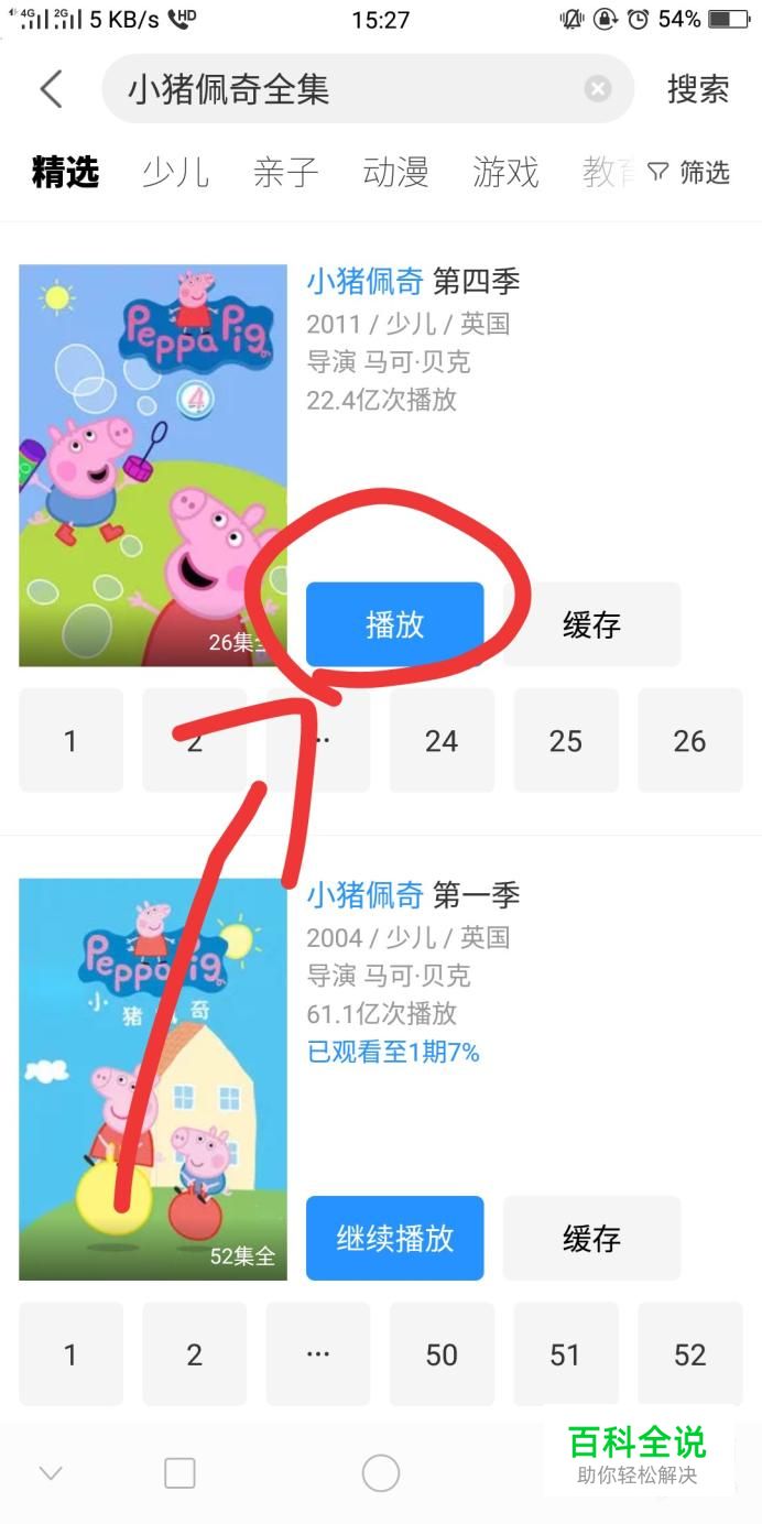小猪佩奇已经更新至第五季了,在出现的界面中选择你要观看的剧集,点击播放,如下图所示。