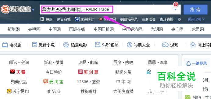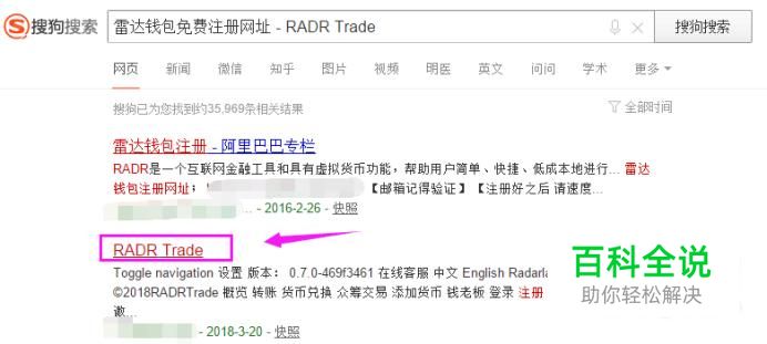 打开浏览器,在浏览器上输入“雷达钱包免费注册网址 - RADR Trade”,如图。