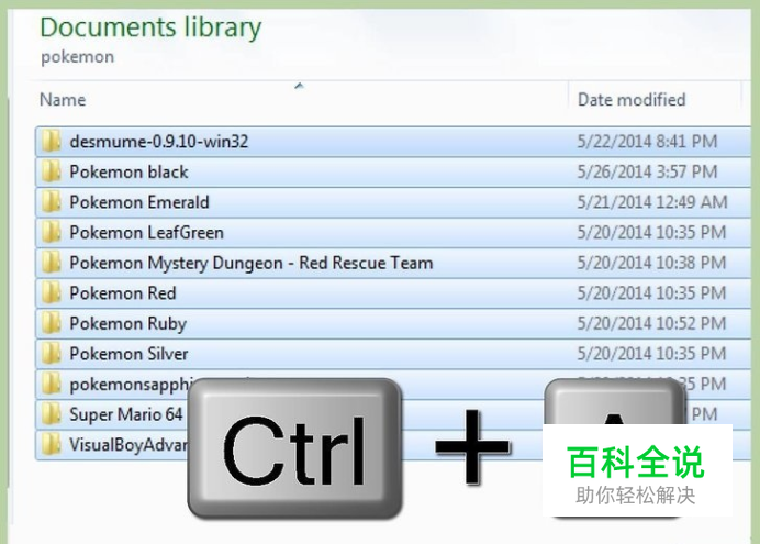 使用键盘快捷键。同时按下 Ctrl+ A按键来选中当前路径中的所有对象(文件和文件夹)。如果在电脑桌面上按下组合键,这会选中桌面上的所有图标。 这个键盘快捷键也适用于大多数Linux系统。