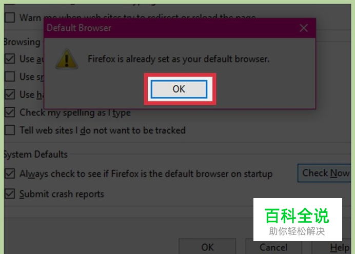 选择“是”。如果Firefox不是您的默认浏览器,会问你是否想将Firefox改变为默认浏览器。