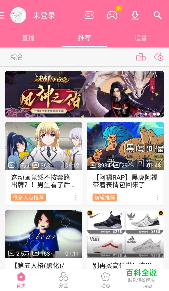 注册:首先点开哔哩哔哩,左上角的显示未登录,点击它旁边的头像,出现图二的页面,点击“点击头像登录”。