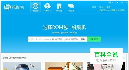 PS:1、下载的 三星A228T 线刷刷机ROM包的 固件号要高于您手机的固件号(部分手机显示为基带号/基带版本,可在“设置”-“关于设备”/“关于手机”里查看到),否则成功刷机后,可能会出现系统不稳定等现象;2、若已不小心刷到低固件号版本,也没有关系,如没有问题则可以正常使用,若出现无法拨打电话、经常自动关机等现象,只需重新用线刷宝刷到高版本固件号即可; 打开三星刷机工具并连接三星A228T,选择相匹配的线刷ROM包,进行刷机 1.插上USB数据线连接电脑,可从选择已下载完成的ROM包,点击“开始刷机”。
