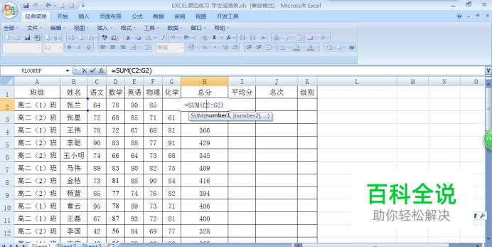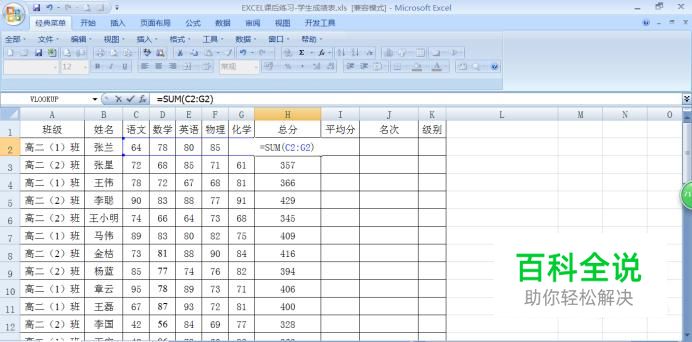 打开excel表,可以看到学生成绩总分的函数并没有加绝对引用【$】快捷键。双击进入公式编辑。
