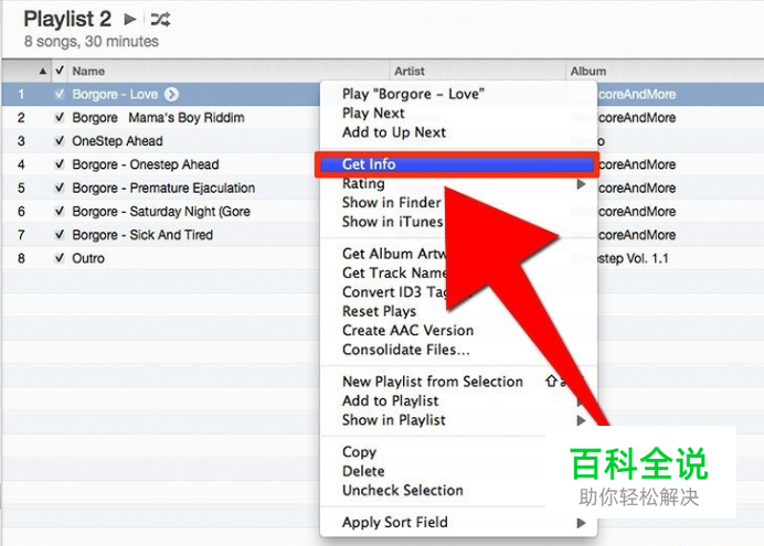 开始附着艺术品。有了这个iTunes播放列表,现在就可以附着专辑封面。这必须是一次做一首歌曲或者一个专辑。 选择您要的歌曲,右键单击它。 选择“获取信息”,然后点击“艺术品”标签。如果歌曲已经有附着艺术品,您会看得到。如果没有的话,按“添加”,然后浏览整个电脑添加您喜欢的任何图片。 请记住,如果您计算机上没有专辑封面的文件(几乎总是如此),那么需要去找到它,最好的办法是上网。