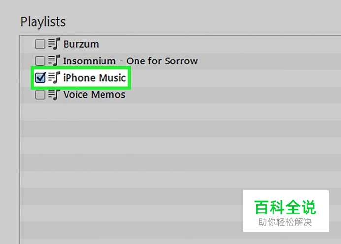 选择“音乐”选项卡中的“所选播放列表”选项。检选您想要同步的播放列表的方框。