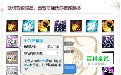 40级技能: 十九级催眠:对敌人造成80%攻击并附加857点伤害,并使其昏睡1回合。