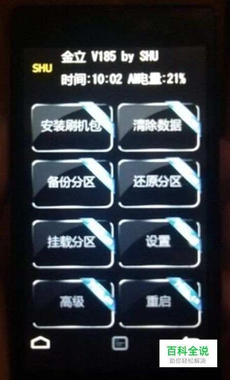 确认手机已成功刷入第三方Recovery,还没有刷入的要先刷入recovery:1.shuajiquan.com/jiaocheng/9687.html