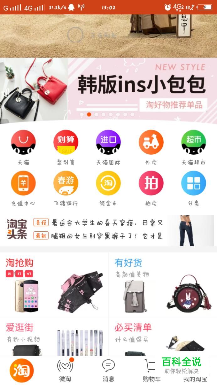 进入淘宝后我们会看到首页界面,在右下角有一个“我的淘宝“