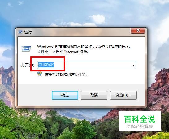 在【运行】程序中输入关键词CHKDSK并回车。