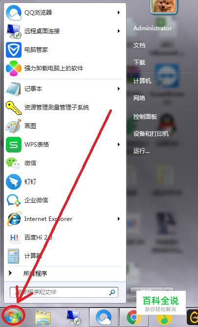 首先,点击屏幕左下角的“开始”选项,进入开始菜单。