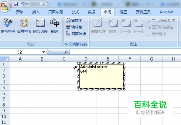 在编辑框中输入批注内容后,敲下回车键确定输入内容,这时候如果把鼠标移到单元格上,就会出现批注