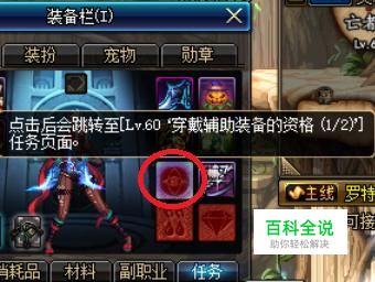 当我们的角色升至60级,任务列表中便会出现“穿戴辅助装备的资格(1/2)”的外传任务。