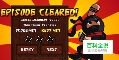 游戏操作方法:先点击任意画面调整好飞镖的方向,再点击一下忍者就可以发射飞镖了。目标是对面那个大钟,而且忍者和大钟之间会有各种障碍,比如木头箱子、柱子、炸药桶等等。有时候只用一个飞镖是没办法完成任务的,要先用飞镖将眼前的障碍物清除掉才行,这时候就要在发射飞镖的时候节省时间,快速的扔出去以获得较高分数。