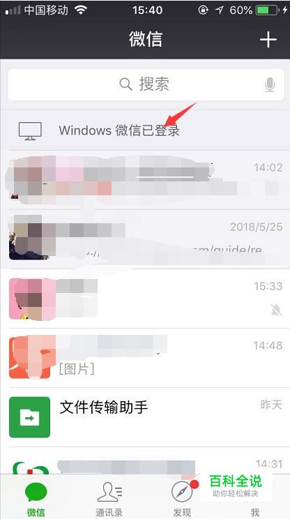 在手机微信的消息页面点击上方的电脑版微信登录提示。