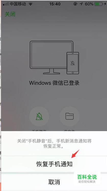 最后系统就会向你确认是否恢复手机通知,点击即可完成。