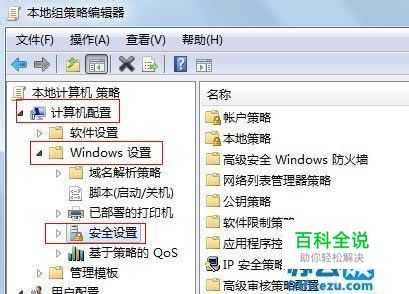 鼠标选择计算机配置--Windows配置--安全设置。